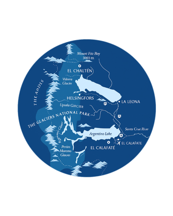 Nestled inside Los Glaciares National Park, Helsingfors is 180 km from El Calafate —